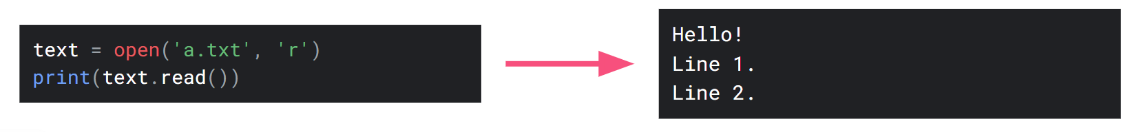 Sometimes, instead of user input, we want to read information from a file instead. If we have a file named a.txt which contains: