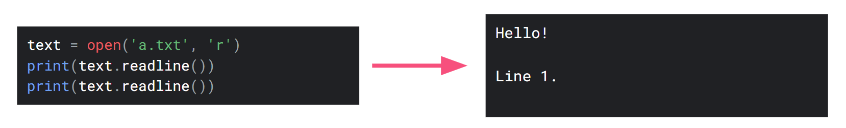 The .readline() method returns one line of the text file.